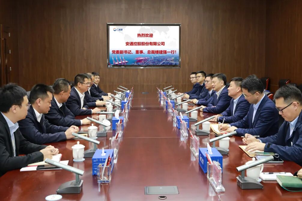 12月25日下午,安通控股(600179)股份有限公司党委副书记、董事、总裁楼建强一行到访,广州港(601228)股份有限公司党委副书记、总经理郑灵棠在港口中心接待了来访嘉宾。双方围绕港航协同、物流项目合作及内贸航运安全治理等议题进行了深入交流。